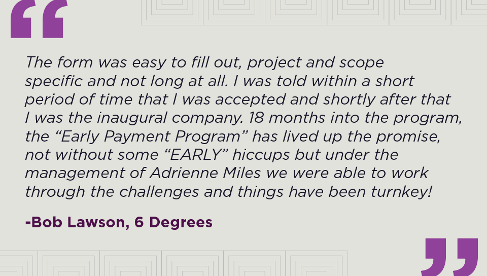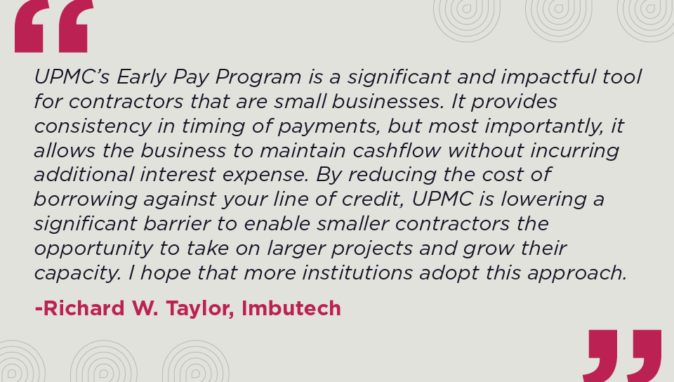 UPMC offers an early payment program and supportive services for contract awarded subcontractors and suppliers.
